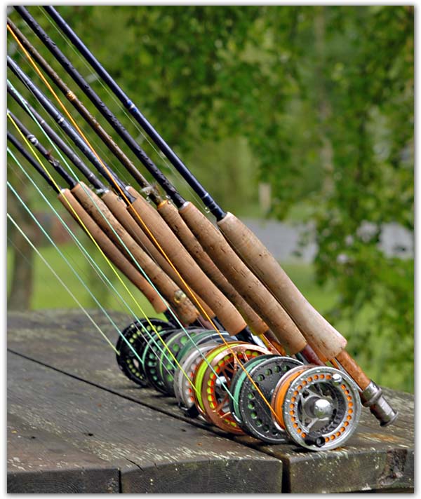 Om man skal regne ut hva kiloprisen pr. ørret blir, så er dette en dårlig butikk! Fluefiske blir vel som snowboard eller golf for utstyret er viktig. Farger og linjer har i alle år fascinert meg, så kunne ikke la være å skyte et bilde av stengene som var ferdig rigget. Her i Ruskeskrittelven fiskes det med flueklasser fra #3 til #7 ettersom hva man føler for. Selv tusler jeg med en G.loomis Streamdance GLX #4 hvilket passer meg godt. Fin og passende aksjon for meg!