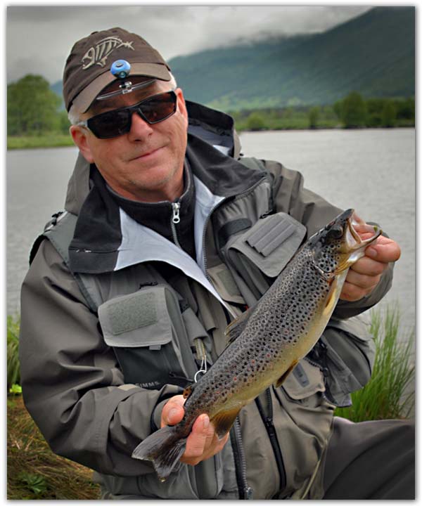 Jeg synes det er spennende å se på fluefiskere som jakter etter stor fisk. Fascinerende og spennende! Carlos var den som strakk det lengste strået. I det han skulle trekke tørrfluen inn, dukket den under vannfilmen. Det vil si at han fisket vått! Sånn er det Carlos!! Vel, uansett hvor uflaks man har når fisken biter, var nå dette en større ørret. <<Den er ikke sååå stor>> sa Carlos! Noen dype drag i fluestangen avslørte vertfall for meg at dette ikke var halv-kilos fisk!Dette var en ny personlig brunørretrekord for Carlos! Han valgte helt frivillig å sette denne tilbake da dette trolig er en stammeørret. Andre hadde garantert blitt fristet til å ofre livet på denne og laget en festmiddag, men ikke Carlos! Nei, han var hverken interessert i lenge eller vekt, men vi runder vel av til 1,8- 2,2 kg for denne??!! Dette har vært en fisketur med mye moro, og slik er det der oppe i Nord.