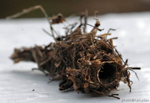 Det nederste huset er ca 2-3 cm langt og mye større enn de mindre ovenfor som er typisk for Grandis vårfluen.