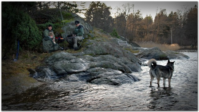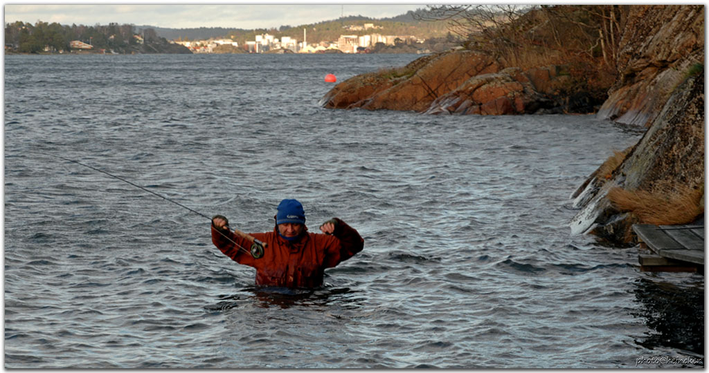 . Vannstanden derimot var det lite å gjør med og der vi hadde vadet tidligere var det nå umulig å vade. Det ble stort sett fiske fra svaberget, hvilket også går greit, men det er jo mer spennende litt lengre ute. Tom og ”guttungen” hadde tatt med seg noen vedkubber slik at pølsebål ble tema. Det ble ikke rare fiskene denne dagen, men en hyggelig tur, som vanlig.