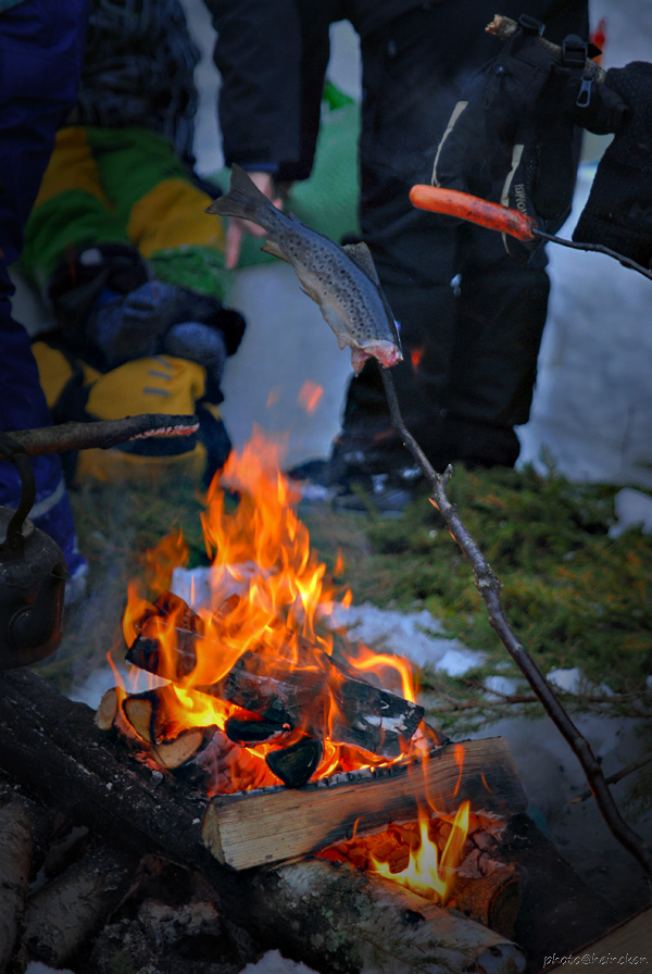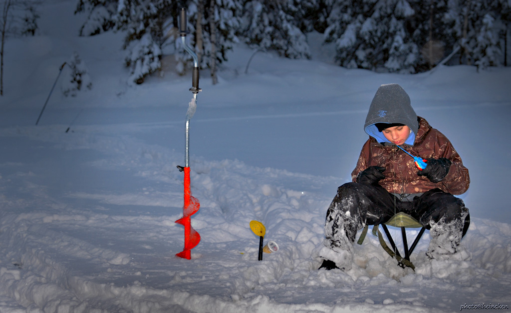 For mange år siden, var Ørretgruppa på vintertur her nede og varmet seg både på det ene-og det andre, samt skihopp. Jeg tror Espen hadde dette i bakhodet, for det gikk ikke bra denne gangen heller! Ungene var raskt igang med å bore hull for å prøve fiskelykken. For noen var dette suksess, men for andre var dette en prøvelse på utholdenhet. Vetle, som jeg endte med å gi navnet «Yrkesfiskeren», satt i timesvis med pilkestikken sin, agnet med maggot og han boret det ene hullet etter det andre! Vi var alle enige om at han var vell fortjent en ørret, men slik ble det ikke.