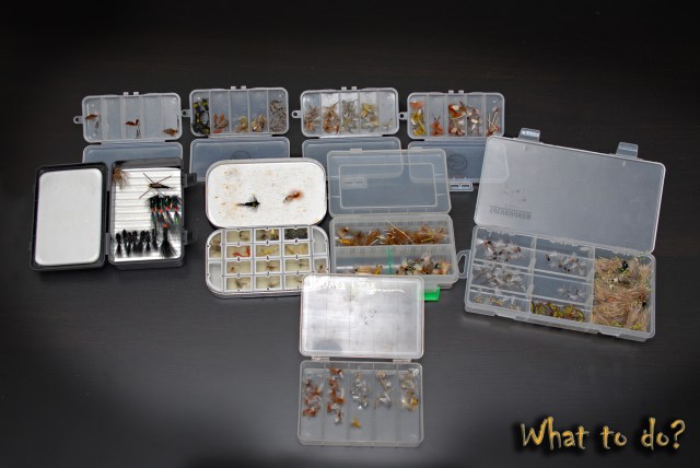 Våren har deffinitivt kommet, men ennå er det rimelig kaldt om morgenene men alikevel så er det blitt isfritt flere steder her i Sørnorge hvilket betyr at det var på tide å finne frem fluevest og fluene. Til min store forbauselse oppdaget jeg at jeg hadde litt i overkant mange bokser, så opprydding og sortering ble et must! Ennå ender jeg opp med for mange……