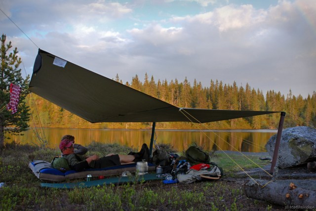En uforglemmelig fin kveld med blå himmel, hyggelig samvær og passe temperatur for å kunne legge seg, men ikke tidlig….. Å ligge i sovepose under en Tarp var ikke å ille, men faktisk en fin sak! Full utsikt 360 gr rundt seg og samtidig frisk god luft, men da solen dukket opp, traff den soveposen raskt og ga meg en varmeovn isteden! Det er for tidlig å stå opp kl 6:30-7:00-tiden, men man får jo en fantastisk opplevelse av å være førstemann