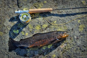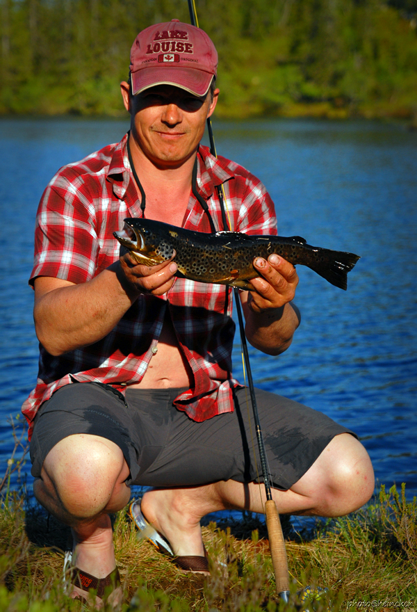 oppe som ser det andre ikke ser, som store vak rett ved camp´n. Etter frokost var Tom nok engang på vei ut på liggeunderlaget for å ta en reprise av gårsdagen oppvisning mens Leif Erik fant en plass vi vet om som også pleier å være bra. Selv ruslet jeg rundt til et annet vann der jeg traff noen andre fiskere som også pirket seg litt i knollen over det alt for fine været. Det var fler som opplevde det samme som oss, så det var ikke oss det var noe galt med! Da jeg kom tilbake for å tenke retur sørover, sto Tom på øya si og Leif Erik satt på plassen sin og kunne bekrefte at Tom nok engang hadde fått sin fisk i dette lille vannet. 550 gram, fin og feit! Sitter igjen og lurer på om dette var det? Er fiske som selvsagt foregikk i Sørnorge over for denne gang? Hva skjer med vårfluer og Vulgataklekkinger? Blir det mer fisketur før turen går til Russland og Kolahalvøyen? Time will show, men en ting er sikkert og det er at jeg har en snill kona som skjønner hva denne spenningen betyr for meg og vet at hun for en glad og fornøyd mann hjem igjen, med fisk eller uten fisk 🙂