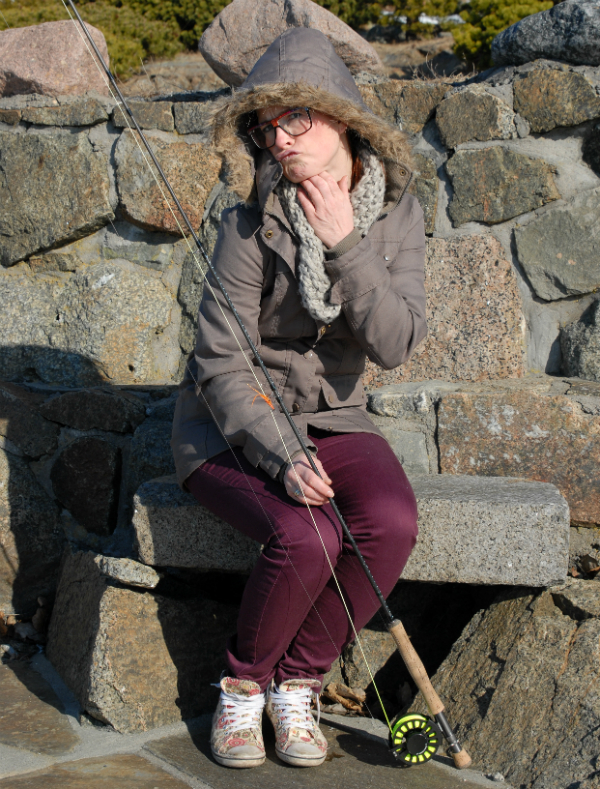 Det var helt fantastisk deilig og befriende og komme ut i friskluft igjen og bare kjenne herlig frisk luft og roen rundt meg. Ender og måker kranglet litt om matfatet, og svanene padlet rundt som noen dominerende store tullinger for å jage bort alt-og-alle, inkluderende den ene fiskeren som hadde tatt turen ut. Vannstanden var lav og med krystallklart vann innså jeg vel at dette ikke ville gi det helt store utslaget av sjøørret, men til og være årets første fisketur, var dette verdens beste start! Da i tillegg Anne