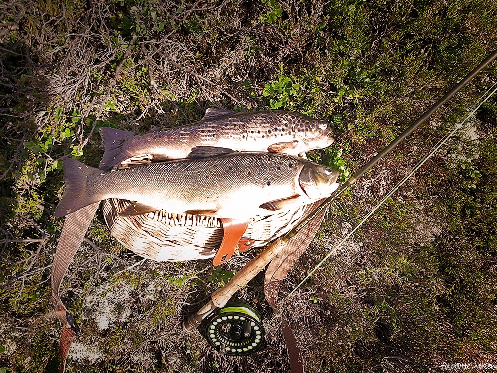 Søndags morgen oppdaget vi at nattens vær med kraftig vind hadde revet opp Leif Erik sitt fortelt. Litt utpå formiddagen klarnet det opp og med en god frokost i kroppen, bar det avgårde igjen! Ned til vannene som søndagen ga oss døgnflue klekking og vakende ørret. En-og-annen Phryganea Grandis «poppet» også opp på vannskorpen, men jeg har en følelse av at det er 1-2 uker for tidlig, hvilket kan stemme med vinterperioden vi har hatt i sørnorge, og her i Troms har det jo vært bikkjekaldt lenge! Troms ja…! Leif Erik var i støtet denne dagen og hadde en «hemmelig» flue jeg ikke hadde! Det gjorde utslaget denne dagen, for til tross for god klekking av døgnfluer, så følte jeg at jeg ikke hadde riktig Parachute.