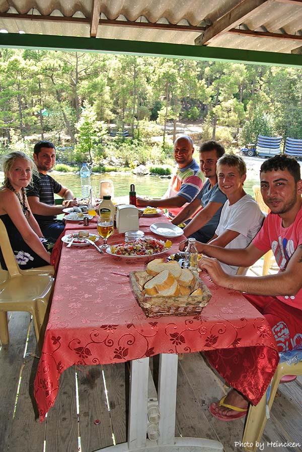 Etter en lang dag satte vi kursen tilbake mot Evrenseki, men stoppet ved den plassen vi husket så godt fra 2006 da vi var på ferie ved Pascha Bay og hadde noen fantastiske kvelder på Garden Beach. Her møtte vi «gamlemor og far» som serverte oss noen smakfulle middager på restauranten som ligger helt ved sandstranden og Anne hadde vel mer eller mindre noen sterke minner. Ungene og undertegnede brukte ikke lange tiden på å komme ut i det godt varme vannet som ga en god kjøling i varmen. Henriette og Robin som hadde vært delefinshow i Alanya etter turen i borgen, kom også for å ta middagen på denne plassen vi så gjerne ville tilbake til. Like god mat var det, men kanskje ikke så rart når jeg «igjen» gikk for Osmanish casarolle 🙂 DSC_0934DSC_1302Det ble også mange gode dager ved bassengkanten på Orange Flower og ettersom solen stakk over fjellkammen i øst kl 06:15, ble det jo selvsagt mange bilder. Bilder av hus, insekter, solen, vann og ungene ble det mye av, men jeg oppdaget da jeg vandret rundt at det på baksiden av leilighetene vokste tomater, agurker, chilli og vannmeloner, og vannmeloner har jeg aldri tatt bilder av! Snevert tema det også, men i en litt ensom stund der jeg vandret for meg selv, ble jo også det interessant. DSC_1291En av dagene etter vi hadde vært oppe i fjellet i Manavgat, hadde det vært en skogbrann i Manavgat sentrum, der dem har en stor foss som et symbol for deres vannkilde Manavgat River. De lokale fortalte om at det i år var varmere enn det pleier og at det var strengt forbudt med åpen ild eller griller nå. Store deler av denne grønne kilden ble helt oppbrent. DSC_1263Området nedenfor der vi bodde besto for det meste av store hotell som for det meste gjestet tyskere. Strendene utenfor disse var derfor forbeholdt hotellets gjester, men det var fler «Public beach» så ikke noe problem for utenom den enormt varme sanden som er midt på dagen! Her fikk man kjøpt enkle lunsjer og noe kaldt å drikke. Alkohol ble ikke servert på disse strandrestaurantene ettersom da tyrkere er muslimer og derav ikke drikker alkohol. img003DSC_0993Noen dager senere ville igjen Boran ha oss med på Rafting ettersom vi hadde nevnt dette som en ting vi kunne tenkt oss. Her ble det tur opp i fjellet på nytt og nå sammen med Onur og frisøren som hadde lokale ved siden av deres restaurant. Ca. 1 time med bil mot Antalya og inn i fjellet gikk det og igjen var det mr. rallycross som lå foran. Dette ble en kjøretur som viste innlandet i Tyrkia fra en ny side. Grønne-og frisk fjellsider og en elv som var så krystallklar som jeg kun har sett bilder av fra New Zealand. Vi kjørte så langt vi kom oppover før veien snudde over en kjempesmal bru, der det selvsagt sto en saueflokk med turister ikledd redningsvester og hjelmer. Vi skulle rafte med noen som Boran kjente og etter raftingen skulle vi bli kjørt opp for et uforglemmelig måltid. Iført de samme tingene som de andre merkelige turistene, var det dekket for 1,4 mil lang rafting sammen med ungene, Anne, Boran, Unor, frisøren og hun som var kapteinen i båten, ei 18 år ung vakker tyrkisk kvinne 🙂 Dette var min første tur nedover en elv med flere stryk som ga oss morsomme opplevelser. DSC_1022Mellom disse strykene var det flere rolige partier hvor vi frivillig og ufrivillig  fikk oss en dukkert i det iskalde vannet. Jeg tror ikke elven holdt mer enn 12-15 grader, så det stakk godt i kroppen når det over vann var rundt 40 grader. En herlig opplevelse som jeg er glad for at Anne hadde på tapeten. Vi hadde bedt om lunsj når vi kom tilbake etter 1,5 time rafting. Dem hadde lagd bekkørret som var innpakket i et blad fra et-eller-annet tre og så stekt. Dette sammen med ris og tomatsalat servert på et spisested som nesten hang utover elven vi hadde taftet i. Godt og smakfullt etter en god actoindag. De siste dagene i Evrenseki gikk til å kose seg ved bassenget og ved stranden inne mot Side. Dolmuş som er de lokale bussene, kostet 2-3 TL en vei og var en morsomt innslag mellom områdene vi bevegde oss i. Kebab er ikke kebab! DSC_1322Ungene likte veldig godt roll kebab mens jeg må si at Odana Kebab var den som jeg falt for. Den siste kvelden vår i Evrenseki ba vi Boran å lage Lammelår for oss 5 som var igjen etter at den andre familien reiste hjem noen dager før oss. Slik ble det og disse hadde stått i ovnen i 6 timer med masse gode grønnsaker og ble servert med ris og sauser. Jeg vet ikke om jeg burde skrive dette, men jeg påsto at dette var mørere enn lammelåret som svigermor serverer, men så er det sikkert forskjell på Tyrkisk og Norsk lam *ro-ro-ro*.