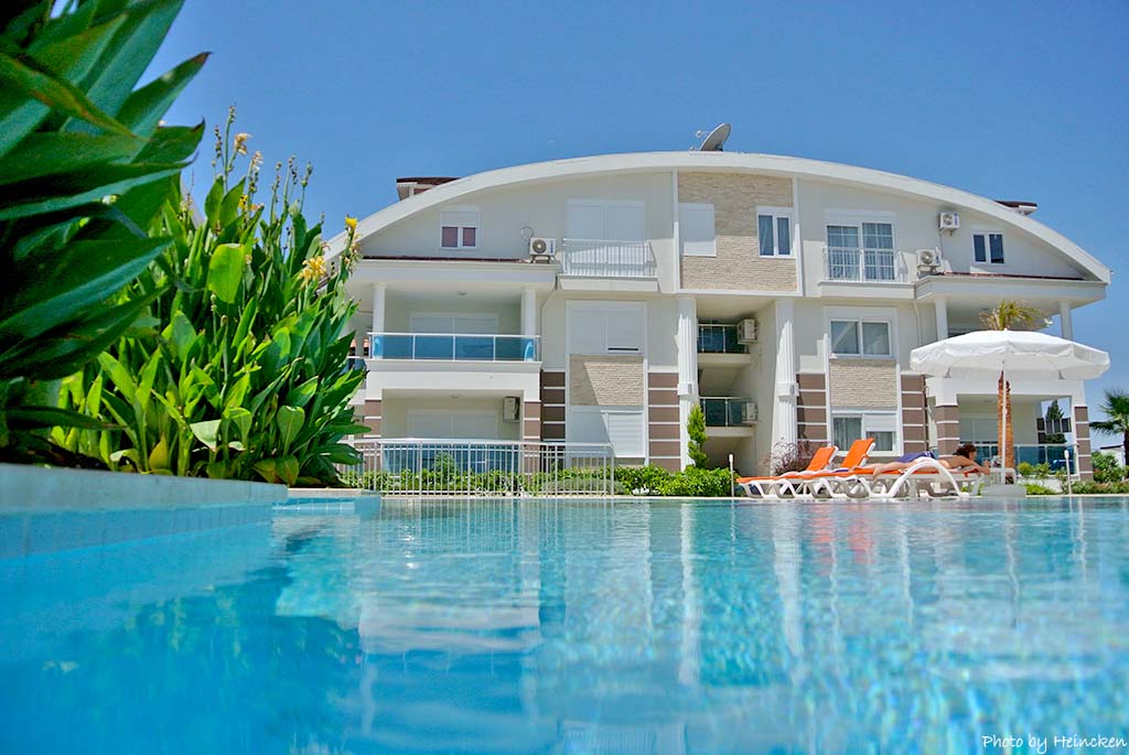 DSC_1294Det var tid for sommerferie og vi hadde booket oss inn i leiligheten til min svoger Tomas i Tyrkia. Leiligheten ble ferdigstilt høsten 2012 og ligger i Evrenseki som er 4 km fra Side i Tyrkia og 45min fra flyplassen i Antalya. Jeg hadde ikke hørt om Evrenseki før men hadde sett dette på kartet, så viste at det lå like utenfor Side og at det også her var kort vei til stranden. Den nærmeste store byen er Manavgat som ligger ganske rett nord for Side ca 72 km fra Antalya. At «noen» synes det er for varmt å tenke Tyrkia midt på sommeren, kan jeg forstå, men jaggu så er man også garantert blå himmel, sol og varme den tiden man er bortreist, slik at man ikke risikerer sol, vind, regn, overskyet, kaldt, forblåst….ja du forstår. Jeg ankom Evrenseki midt på dagen og må si det var en rå overgang fra Norge med sine 20 varmegrader til nå 37 i skyggen. DSC_1283Leiligheten lå østvendt, så verandaen hadde litt skygge, noe som var helt perfekt med en sol som sto midt på himmelen. Utenfor, i midten av leilighetskomplekset var det et stort basseng med strandstoler. Palmer og blomster var også med å pynte området som heter Orange Flower. Robin og Henriette hadde reist ned noen dager før direkte fra Roma og møtte Anne med ungene. Det var endelig tid for en skikkelig god og varm sommerferie sammen med familien 🙂