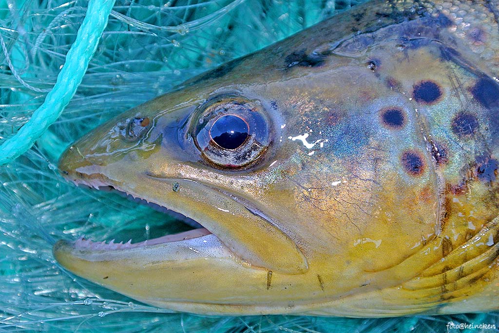 Søndags morgen var det nok engang opp tidlig og igjen var solen tregere enn meg og jeg fikk roen i meg etter en urolig natt. Kanskje var det tanken på de store ørretene som ville være i garnene, eller var det frykten for Vindfjelltrollet som jeg tenkte på? Vertfall så finner jeg mye indre ro i å se utover vannet der tåken stiger fra vannskorpen og lager fantastiske malerier som dette rett over her nå! Ingen bilder er like og derfor klarer jeg å sitte timevis å bare nyte dette spillet. Vel, denne søndagen ga oss mer å jobbe med, for noen av garnene var relativt fulle av tryter.