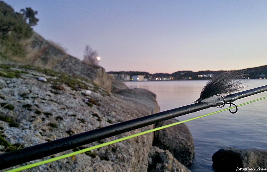 Jeg så flere fine sjøørret som hoppet klar av vannet og vi hadde flere fisker etter fluene, men det eneste som vi fikk til å ta her ute, ytterst i havgapet, var sei. Sei er sikkert greit å få det, men da må det være større enn de vi fikk. Etter flere timers fiske og noen gode øyeblikk, var det retur og oppsummeringen ble ikke den helt store historien, men tur ble det vertfall.