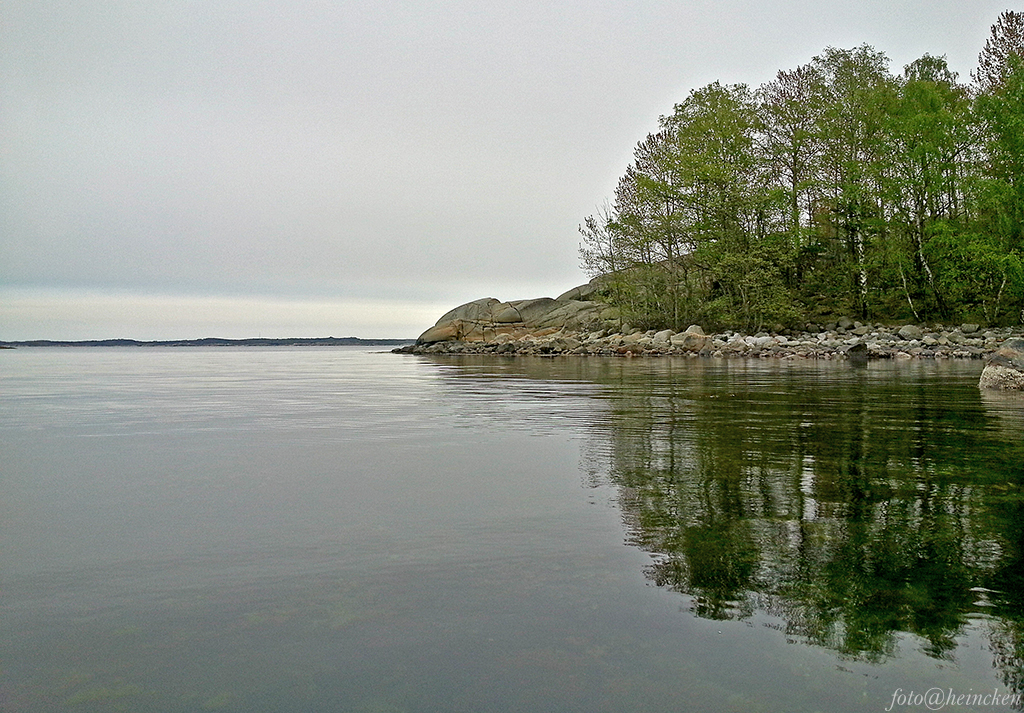 Å ta ting på sparket er ofte en utfordring, kanskje rettere sagt et ork, men vær-prognosene de neste dagene melder regn, regn og mer regn, så jeg heiv meg rundt og satte snuten nesten ytterst i fjorden der det er en liten strand og mye vann på utsiden. Bukten ligger i le for den svake vinden som denne kvelden kom fra sør. Det var nok engang veldig lavt og krystallklart vann, hvilket gjorde det spennende å vade rundt også der man ikke har kommet ut før. Flere fisker var høyt i luften denne kvelden og jeg hadde en liten følelse av at dette kunne bli noe å skryte av til spesielt en som reiste hjem fra Yxenøy etter å ha gått tur med sin elskede kone 😉 Etter en liten stund, så jeg mye fisk som var oppe like utenfor og jeg beveget meg bort til området.