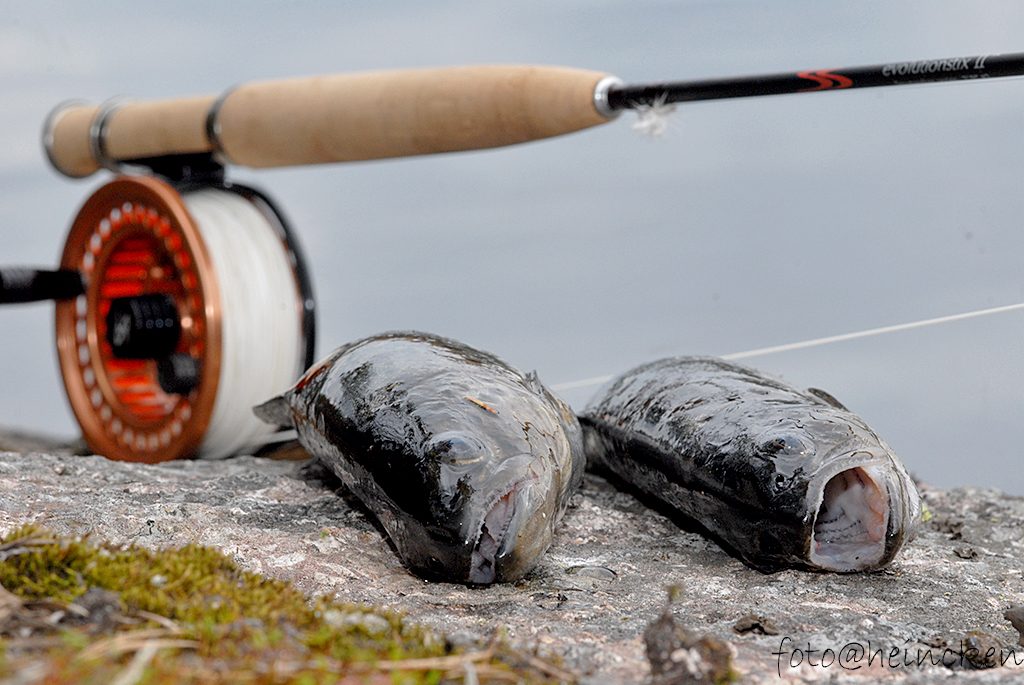 Det har vært mange fine kvelden og ikke minst dager og sommeren står virkelig for tur og banker på døren, men noe gjenstod oppe på Vindfjell, nemlig det siste laget med Clipper 2 på tre-prammene. Etter en perfekt arbeidsdag, duret jeg oppover og hadde pakket med fluestengene, deriblant den ”nye-lille-søte” Streamstix Evelution #2 som ble kjøpt inn i vinter og som er påtenkt elvefisket i sommer. Etter å lagt på et lag Clipper på båtene i strålende solskinn, så bar det ut i en av båtene som alt var satt på vann og må si at å ikke ha rigget seg helt ferdig på land før man entrer båten når det vaker masse utpå, gir stress! Solen som varmet satte i gang en klekkeperiode av Marginata-og Vespertina og det poppet opp døgniser over alt. Det er ikke ofte jeg har sett slike klekkinger i Svartvann, men som noen sier: Man må være der når det skjer eller at man må kjenne sin besøkelsestid!