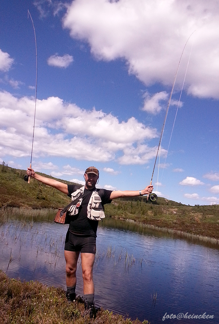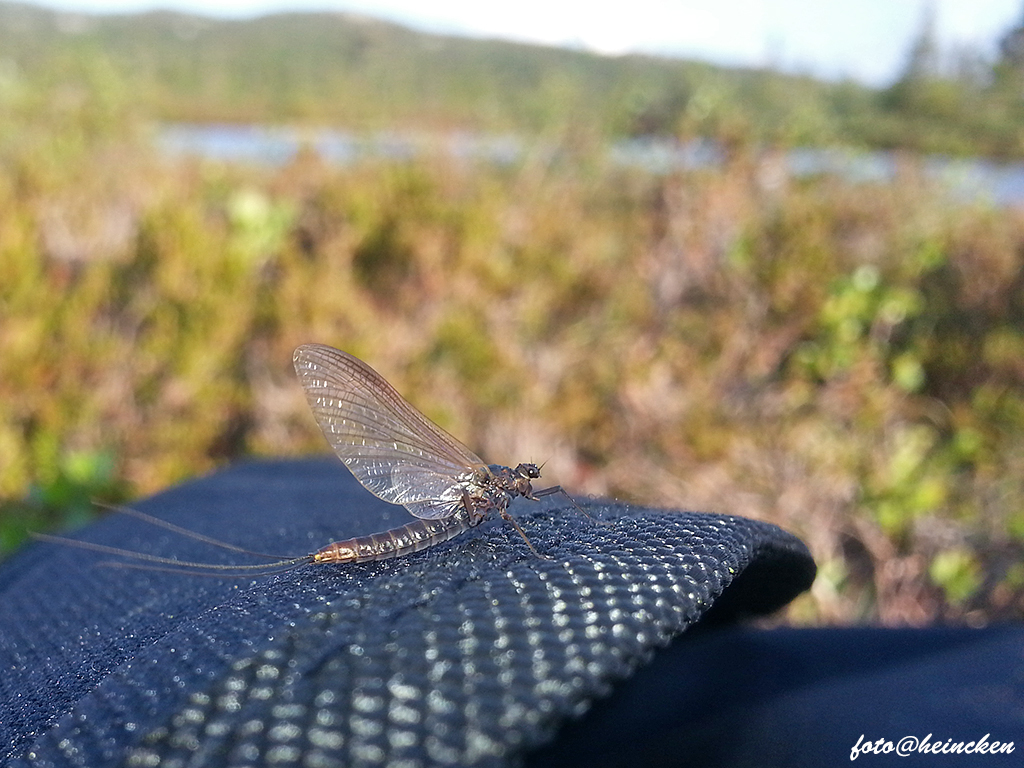 Det er begynnelsen av Juni og jeg har ikke vært her oppe så tidlig, for vanligvis er det vårfluene vi har hatt best klaff med og da av typen Phryganea Grandis som får den større fisken opp til overflaten og som har gitt meg flere fine fisker over 1 kilos grensen. Døgnfluene har i disse periodene vært i undertall og det var akkurat derfor jeg ville opp tidligere for å sjekke ut dette stadiet også, noe vi også fikk! Store mengder av dansene Leptophlebia vespertina og Leptophlebia marginat også kalt for Stor spissgjelledøgnflue, danset over lyngplantene og i væreoverganger klekket det i også i vannene, noe som satte fart på vakende ørret.
