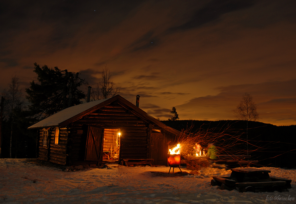 Minnene noen år tilbake, da stål-isen over nyttår ga oss et fantastisk skøyteføre oppe på Svartvann, Breivann og Langevann var en god faktor for å legge noen dager til «Plassen min» bare noen få minutter fra Sandefjord og med oss på lasset denne ettermiddagen var Monika og Morten. Anine og Robert hadde også en plan om å tilbringe nyttårsaften oppe på Vindfjell, men dukket opp dagen etter. Da vi kom opp mandagen i romjulen, lå setervollen hvit og vakker der den ble lyst opp av månen. Det var mange forventninger for denne uken, både med tanke på skøyteisen og været på nyttårsaften.