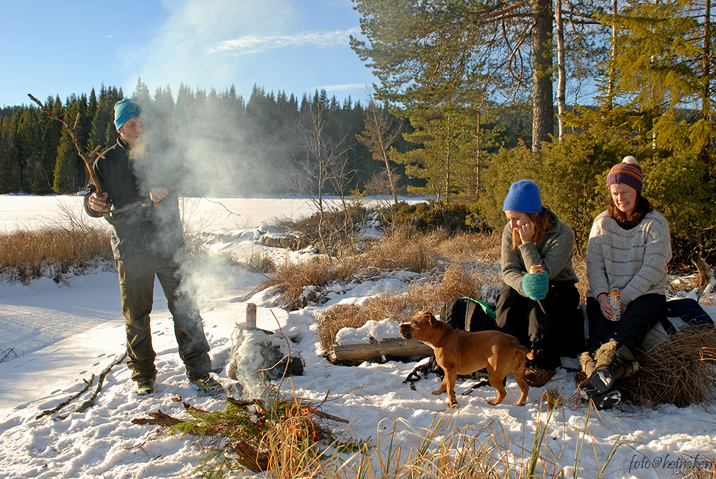 Få ting er bedre å kle seg riktig å nyte frisk luft, så i mørket fyrte vi opp i en bålpanne og fant en veldig hyggelig tone rundt benken utenfor Svartvannssetra, der tonen var lystig som om det skulle være midt på en sommernatt. Dagen derpå da den verste røyken hadde lagt seg bar det avgårde igjen, ut på dagstur. Å være så heldige med været er i for selv ingen selvfølge, og ingenting er bedre enn å kunne kose seg med sol, noen få minusgrader og et aldri så lite bål, da er vertfall jeg fornøyd 🙂