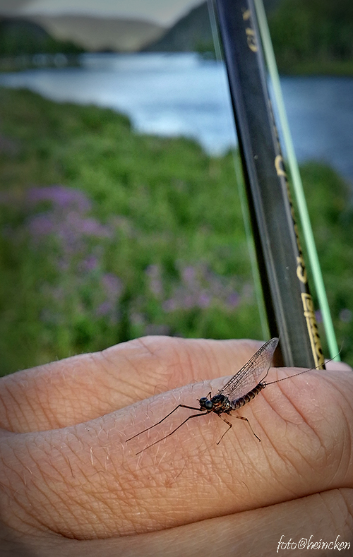 Utover i uken så ble det ennå varmere og de første flakene av døgnfluer begynte å vise seg nedover elven. En av de største av dem, Siphlonurus aestivalis begynte også å vise seg på kvelden og neste dag var også dem igang med å sverme på himmelen, riktignok ikke i den mengden dem pleier, men uansett et hyggelig gjensyn. Jeg blir liksom så veldig overbevisst over at dette kommer til å ta av når jeg ser og opplever slikt 🙂 Alle fikk fine fisker disse dagene her og Leif Erik var den første av oss som klinket til med en bamse på 1,4 kg. Denne fikk friheten tilbake ettersom dette var et prakteksemplar av en elvefisk iført en gyllen gulldrakt med store fine og runde brystfinner. Den hadde også en lang munn med en liten krok, noe som fikk Leif Erik til å gjøre et klokt valg. Selv var jeg også veldig heldig denne gang og klarte å komme meg over kilo´s grensen