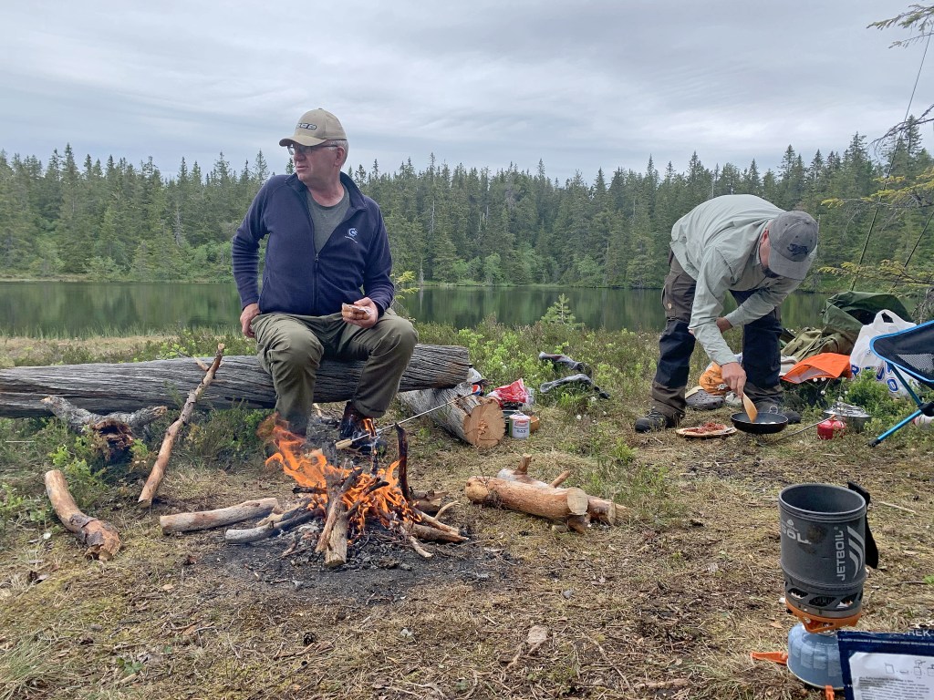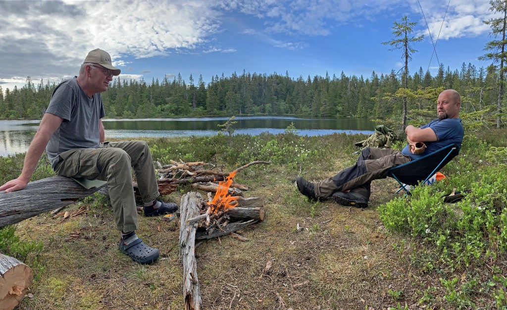 Etter mange timer på fisketur rundt i området uten å ha klart å lure ørretene til å forsyne seg av våre imitasjoner, møttes vi ved et av knutepunktene på fjellet der det mysset av mennesker. En liten følelse av at man er i byen, noe som IKKE er bra! Hvordan dette Korona-året blir i Norsk natur, enten det er til fjells eller til havs, tror jeg blir en prøvelse for flere enn bare meg! Når man går timevis eller man finner en øde øy, dukker det nå opp alle type mennesker på de utroligste plassene.
