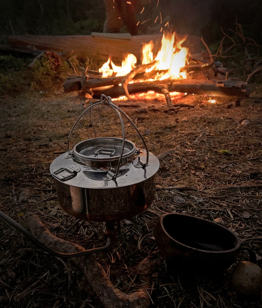 Etter igjen å ha kommet tilbake til camp´n var det tid for litt pølsemat og Morten er ikke vanskelig å be om et aldri så lite pøslebål selv om undertegnede selv stekte pølsene sine i stekepanne, men skal ikke mange kvistene til for å få svidd av noen få oste-pølser.