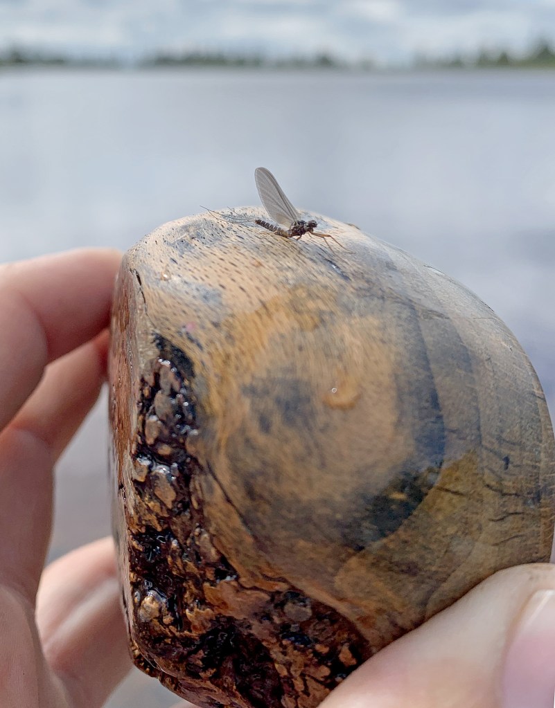 Det er på en måte flaut å fortelle det, men tro at det er 2 år siden sist jeg fisket etter brunørret og det er takket være en viss ferie i Tyrkia i fjor, men nå fikk jeg da muligheten å bli med Ole Petter, Morten og Leif Erik på tur. Etter jeg fikk spørsmålet fra OP så har jeg virret rundt og hatt reisefeber fordi jeg gledet meg så mye og det meste var vel pakket ferdig ca 1 uke før vi reiste, for utenom tannbørste og øl! Etter en ganske så lang biltur var det å bruke kroppen og føttene for å komme seg videre inn og opp på fjellet der Tyrivannet lå. Et fantastisk fint vær med knallblå himmel og en steikende sol gjorde turen til en forholdsvis svett tur, men vet at denne kroppen har veldig godt av å svette litt 🙂 Vel fremme lå vannet som skulle huse store ørreter og forventningene var til å kjenne på da vi speidet ut på den blanke overflaten. vanntemperaturen som forteller mye var 16 grader, noe som ikke er for mye men som også forteller at sesongen snart er over for tørrfluefiske. Etter å ha sett litt vakemønster på fiskene, sanket tørre kvisten og stokker for bål på kvelden, forsøkte vi oss men det var ikke enkelt! Selv om det klekket veldig mange vårfluer, også den største av dem, så var ikke fiskene særlig interessert i det som padlet rundt utpå vannet. Den ene-etter-den andre Grandisen fikk pile i fred rundt utpå uten å bli tatt av de noe større ørretene, men plutselig så vi og hørte vi disse store fiskene som tok hardt for seg i vannskorpen. Det skulle gå flere timer og faktisk ganske nøyaktig én time over midnatt klarte OP å lure en av dem til å ta fluen i mørket! En vakker prikkete fisk som vi ble enig om at skulle gi OP frokosten noen timer senere, i stede for Egg&Bacon 🙂 Fisken veide like under 800gr og var i fin kondisjon og rød i kjøttet. Et godt eksemplar og vel fortjent etter flere timer med kasting på oss alle.