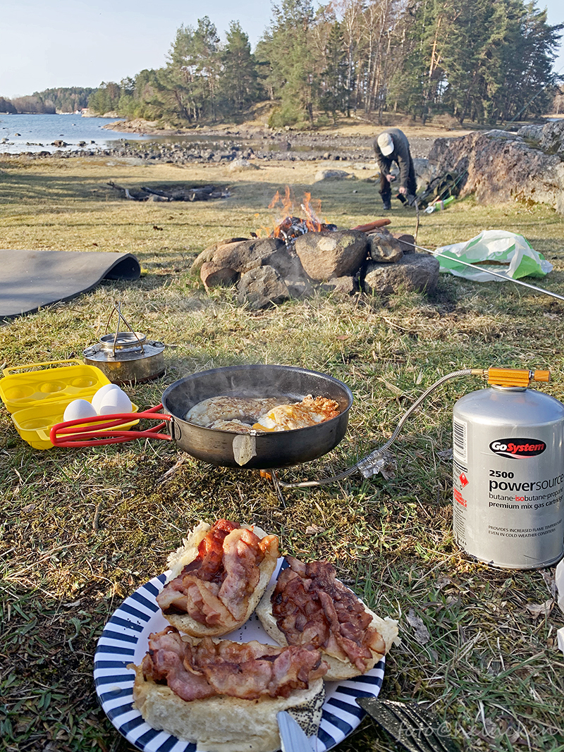 Fra å ha hatt noen netter i Milla, bar det nordover med Bi-Polar eller gummijolla fullessa med utstyr for overnatting og en sekk med ved. Aldri en overnatting uten å fyre bål, selv om det nå er bålforbud, så er det jo lov når det kommer til etablerte bålplasser for matlaging.