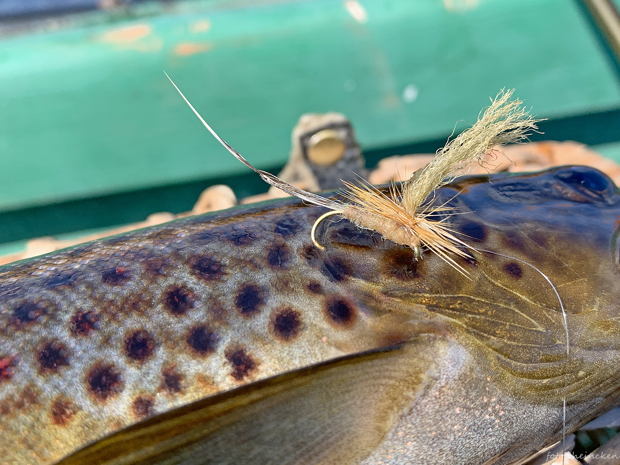 For dere som ikke kjenner til disse navnene så er Vulgata blant de største døgnfluene vi har i Norge og Grandis er også den største vårfluen i vå fauna. Dette er også noe som er mye mat for sultne ørret som ofte er å se vakende i områder der disse to artene klekker ut fra nymfeskallet sitt og spretter opp på vannskorpen for å tørke opp litt før dem flyr.