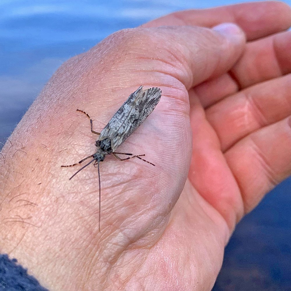 Nå svirret det både vårfluer og døgnfluer utpå vannet, men det var vårfluene som var i flertall denne dagen.