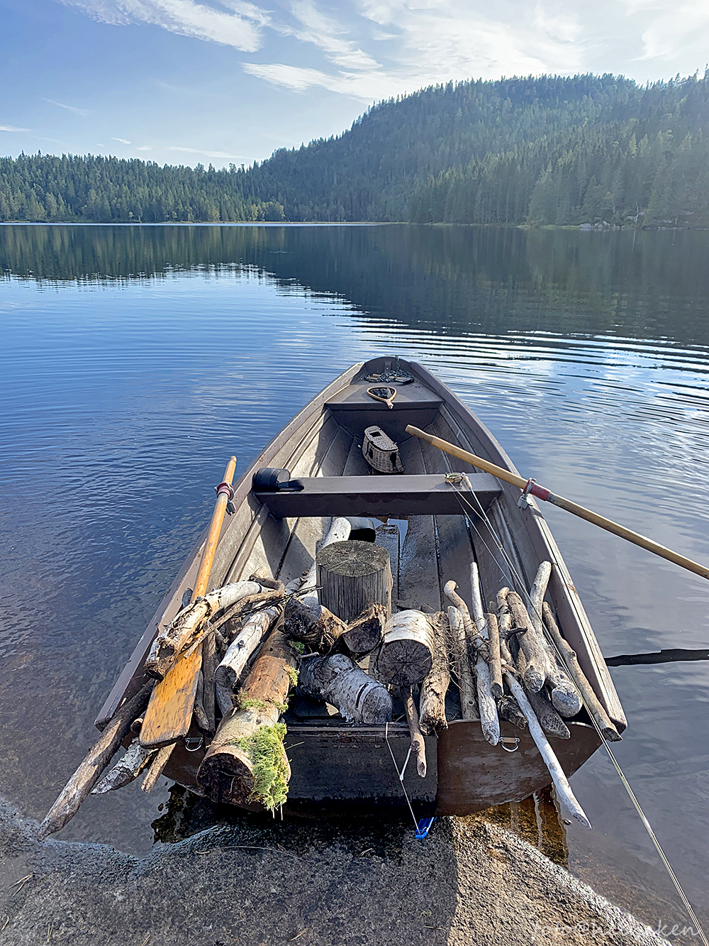 Da kvelden tok tak i dagen for alvor, tenkte jeg at en bitte-lite kaffebål ville gjort seg utover kvelden ettersom det nå stadig blir mørkere tidligere på kveldene. Ettersom jeg ikke hadde med meg noe øks eller sag i båten, valgte jeg den aller enkleste, nemlig å rappe fra en av beverhyttene like i nærheten! Da jeg forsiktig nærmet med den ene veletablerte hytta, som har stått der i mange år, kom tanke på at nå blir jeg muligens overfalt av en illsint bever.