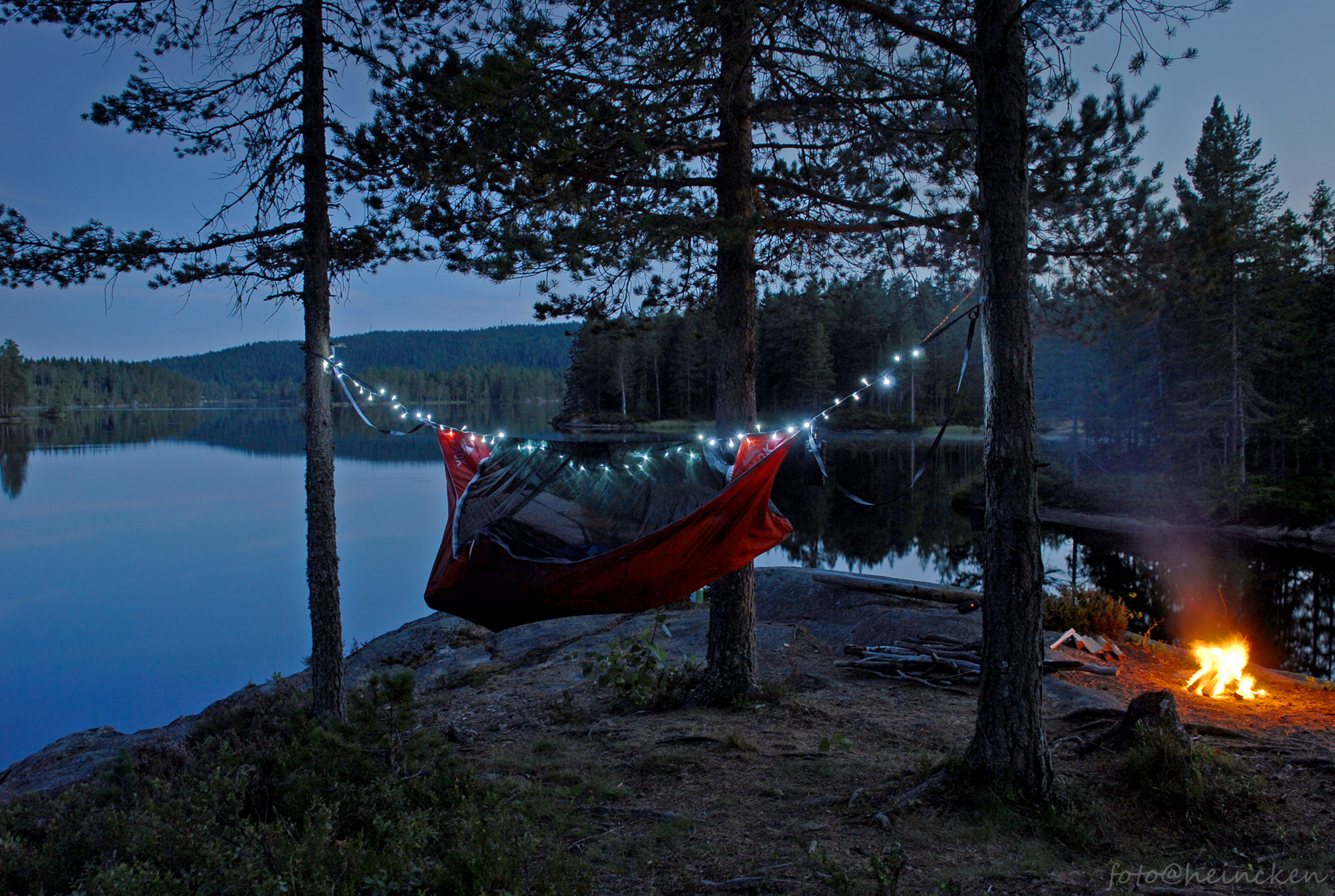 Utfordringen denne natt ble da jeg kl. 02:45 våkner eller tror at jeg drømmer om at det er noe galt med det oppblåsbare liggeunderlaget som er «Alfa-og Omega» for at en hengekøye av denne typen skal fungere, nå plutselig er tom for luft!