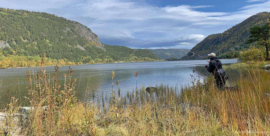 Det er slutten på sesongen og bladene drysser fra bjørketrærne som har de vakreste høstfarger her oppe i fjellet! Drømmen om en siste runde med vakende fisk i rennende elv dette året ble en realitet da jeg fikk muligheten til å besøke en god venn oppe i Ruskeskrittet, hvor jeg fikk noen dager, også sammen med XO som hans Border collie heter.