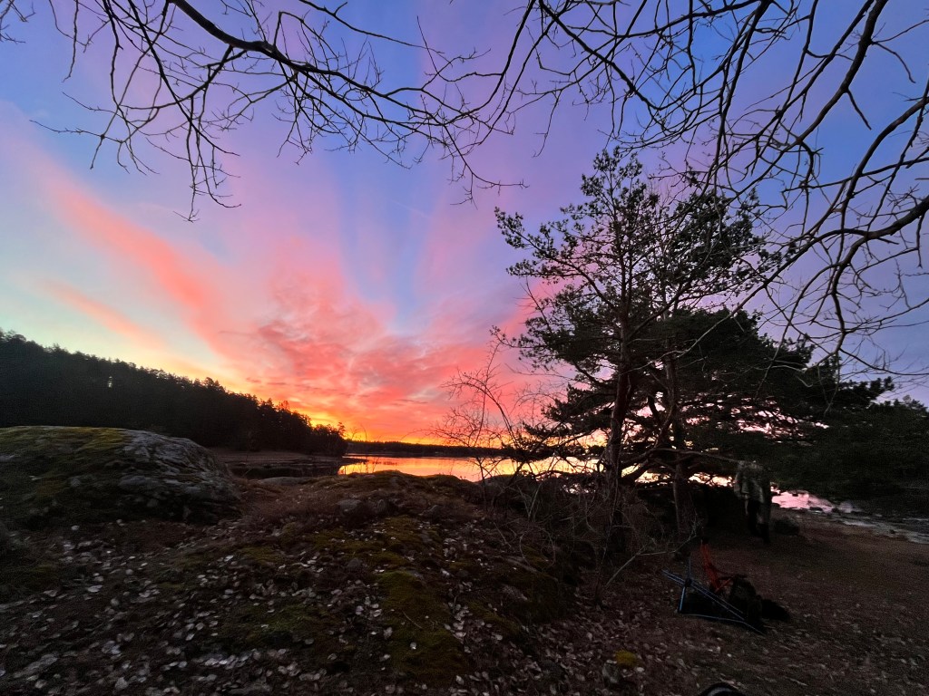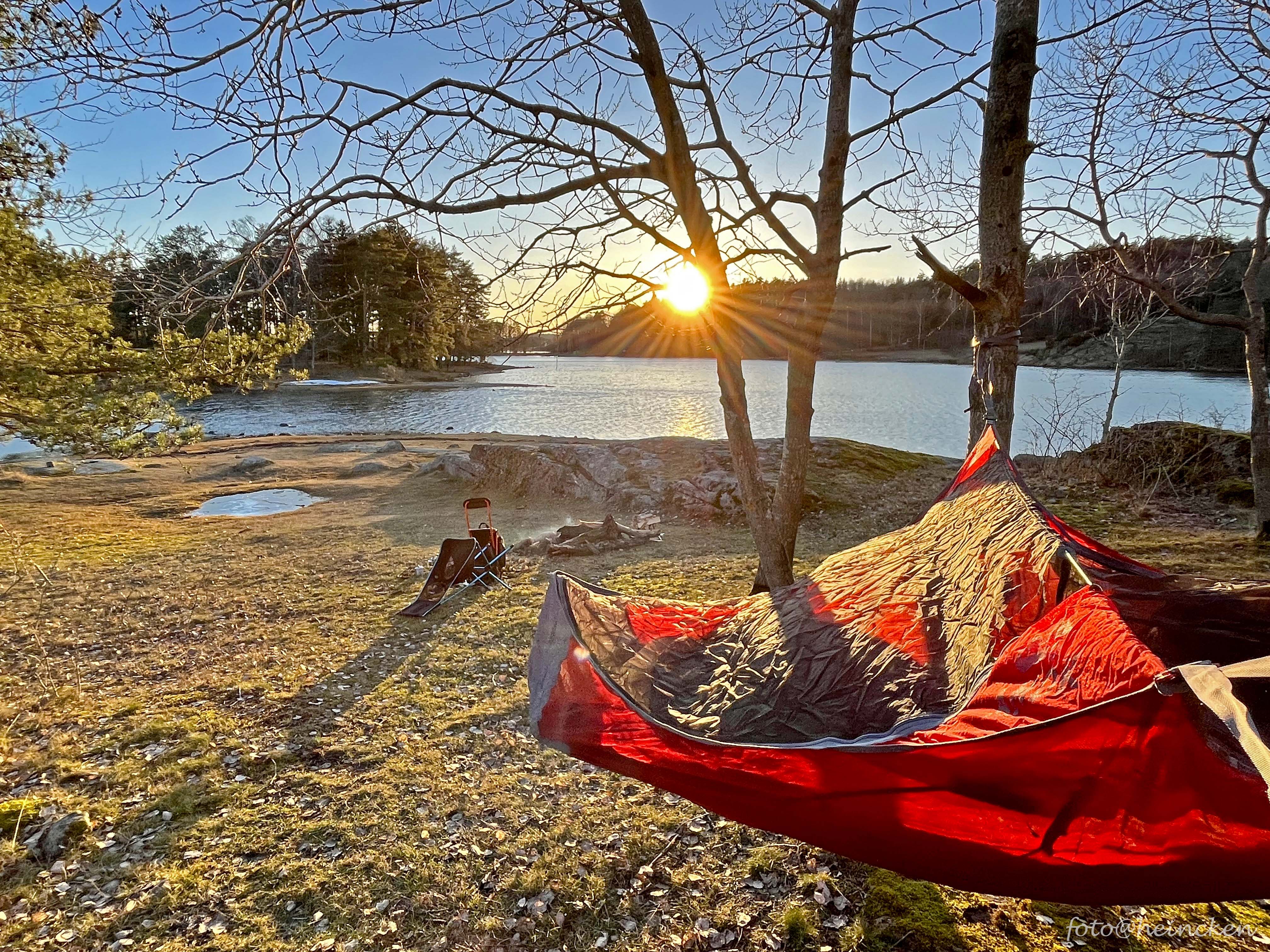 Det er 18 februar og rene vårværet ute om dagene, så fristelsen for å dra med seg utstyr for å henge i køye ble for stor! Riktignok så er det mye som skal med når man også vil fiske, grille pølser og sove ute, så endte med å ta båten ditt jeg også skulle møte flere andre venner. Værmeldingen meldte fint vær men at det skulle falle under frysepunk på natten, men med ny sovepose så håpet jeg at det skulle kunne gå bra!