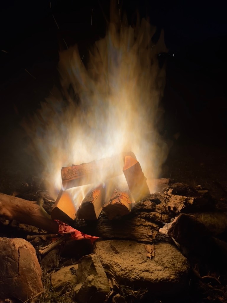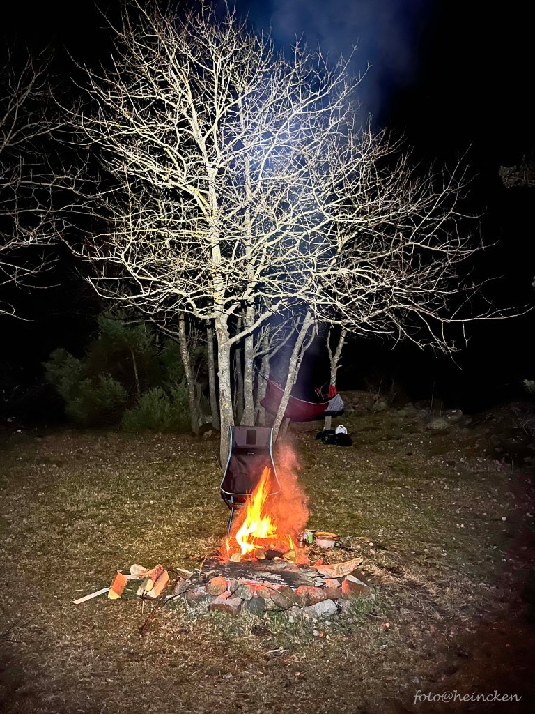 Men temperatur ja….og det ble mørkt kl 18 denne kvelden og med mørket falt temperaturen raskt, så det var å få på seg varme klær og holde liv i bålet, for det ble kaldt!
