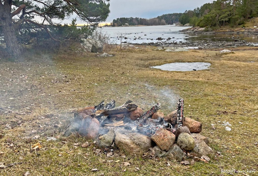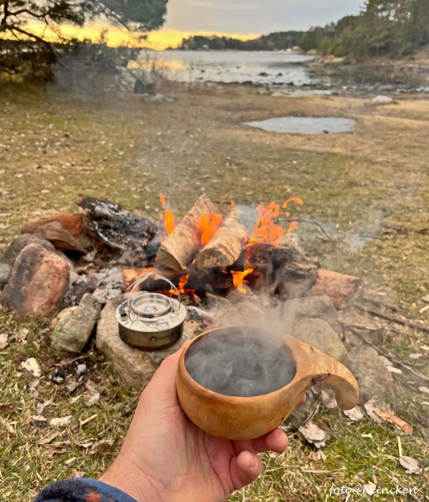 Jeg vet ikke hvor kaldt, men det var skrevet at det ville bli -3 grader og etter en ganske så tidelig kveld der soveposen ble pakket rundt kroppen kl 20:15, var det igjen en morgen hvor jeg kunne konstantere at 1,5L flasken samt de 2 ølboksene jeg hadde med for turen, var frosset helt. Det samme hadde ogsp kanalen på innsiden av halvøyen jeg lå på og vannstandet hadde også synket den del. Det var kaldt denne morgenen, så det om å gjøre å få på seg varme klør igjen og få fyret opp en kopp kaffe samtidig med å få fart i bålet igjen. Noen ganger lurer jeg jo selv på hvorfor jeg gidder dette, men det er jo noe med å ha gjort det, og faktisk lagre dette på «minnebanken» til tider hvor man faktisk lurer på hva man har gjort eller hva som frister og ikke-frister
