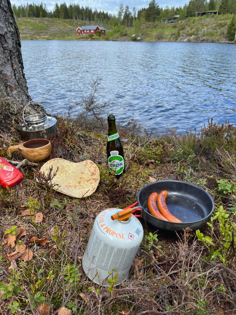 Det var ikke særlig til vak å se denne formiddagen, og sjokkerende nok så blåste det litt opp, så fant heller en lun vik å sette meg i for å nyte utsikten, solen og en-og annen fisk som var over vannet. En kaffekopp, en stekepanne og 2 grillpølser ble vel oppsummeringen av denne formiddagen. Har vel konkludert med at det er ett hatt for tidlig, men det kan ikke være mange dagene igjen før det er vakebonansa……..