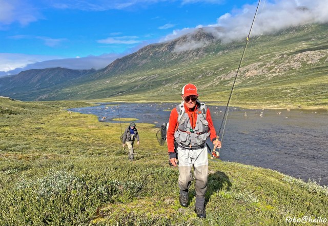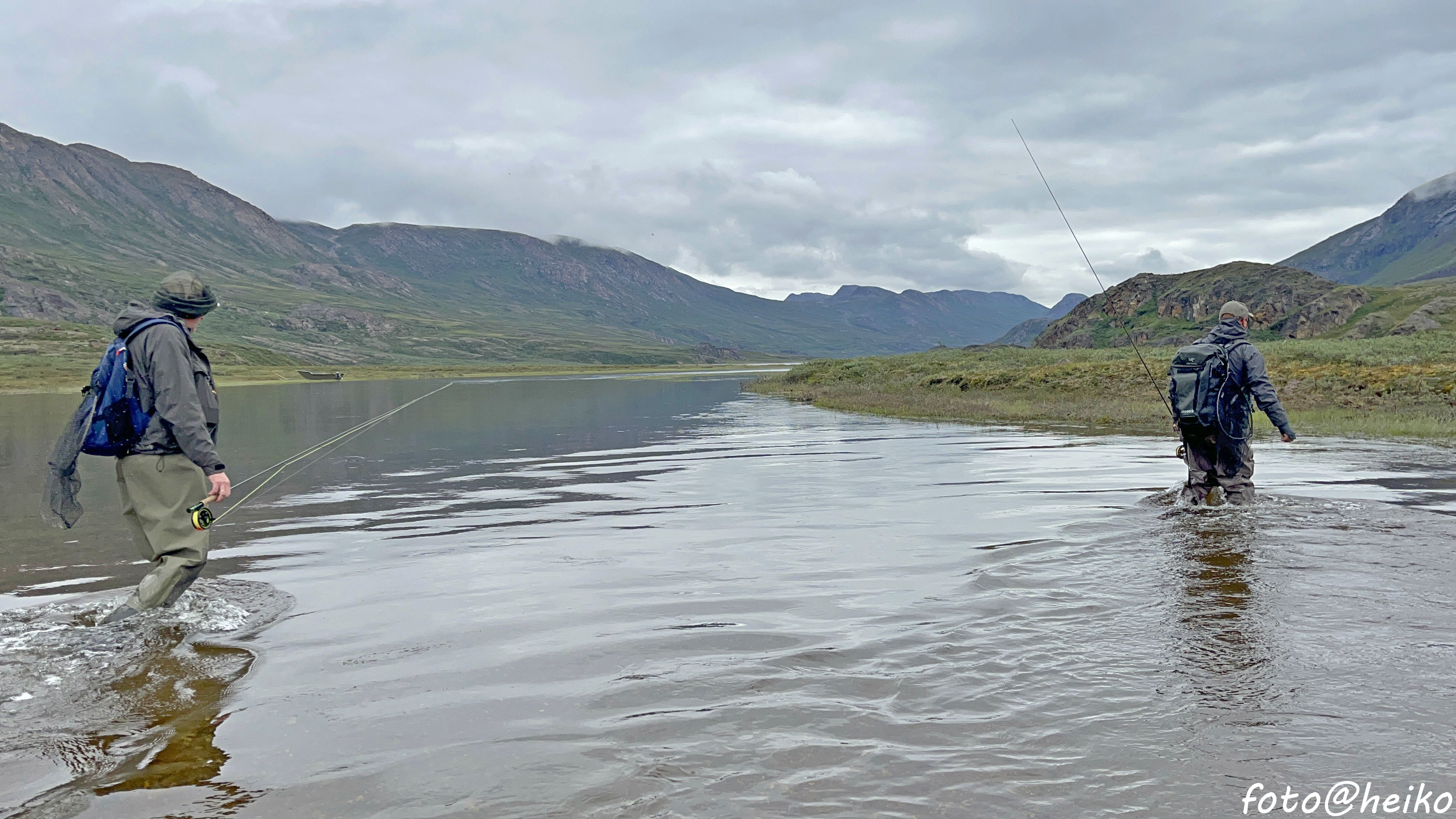 Første dag inne på Camp North startet med frokost kl 7 og her fikk vi også en rask gjennomgang av regler og adferd, som bl.a. sikkerhet i området. Etter en god frokost valgte vi å gå turen helt opp til One Million Pool, som vi hadde lest om, og som var en sideelv inn i Eqalugsugssuit som hovedelven heter. Turen som først var opp i toppen av elven tok 1 time og derfra var det ca 40 min videre som var 9km én vei i et terreng med lyng og torv. Da vi omsider kom frem til det vi trodde var plassen, begynte vi å kaste for her sto det stoooore røyer! Det var absolutt fordel å bruke fluer som var fortynget for å få dem ned, men det var også mulig å få mindre fisk på rundt 1,5kg til å ta foamfluene! Dette ble en dag med mye ny lærdom om et fiske jeg aldri har utført før og fiskene vi fikk var fra kilofisker til ny pers for meg!