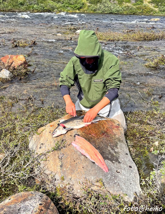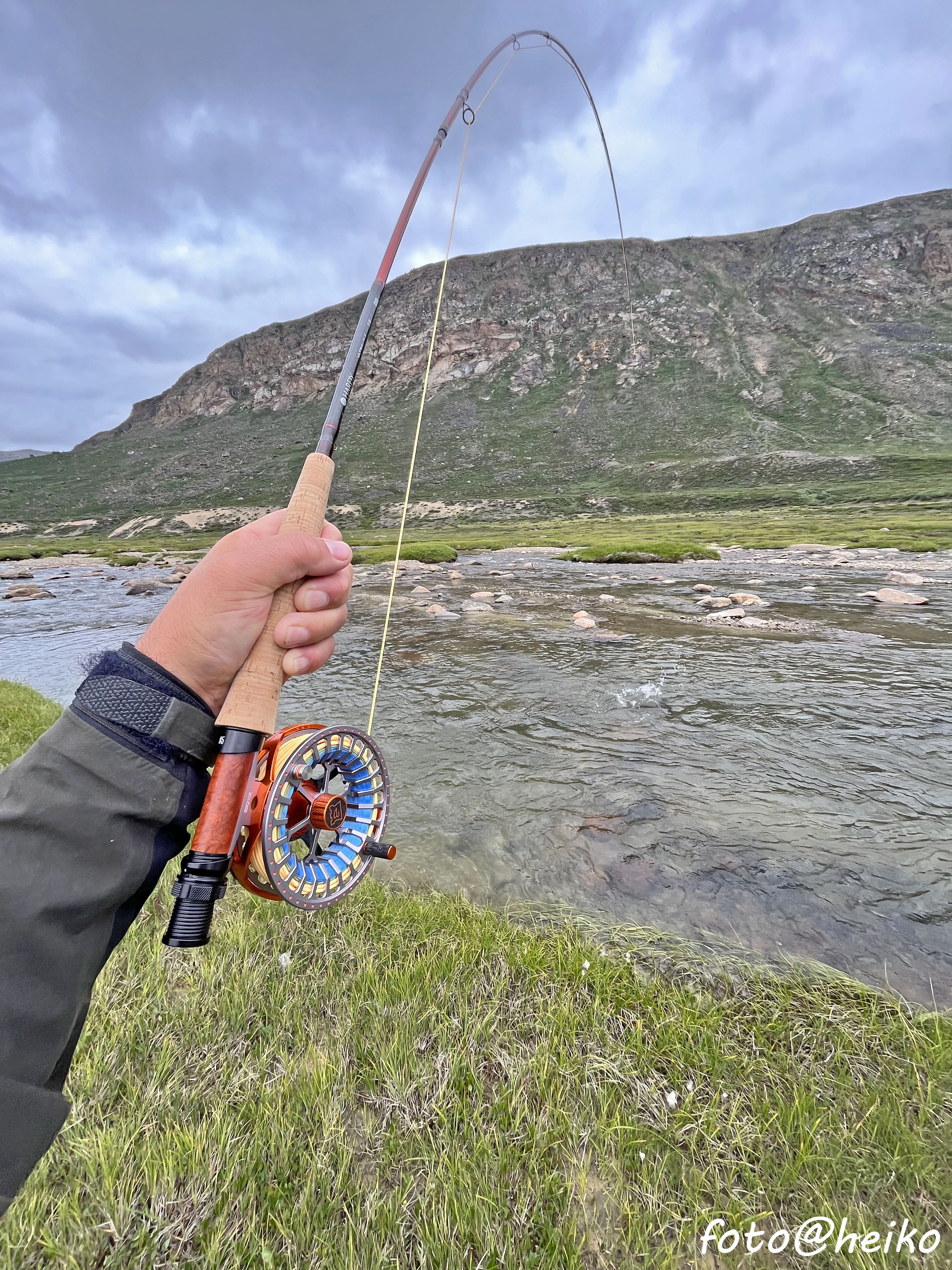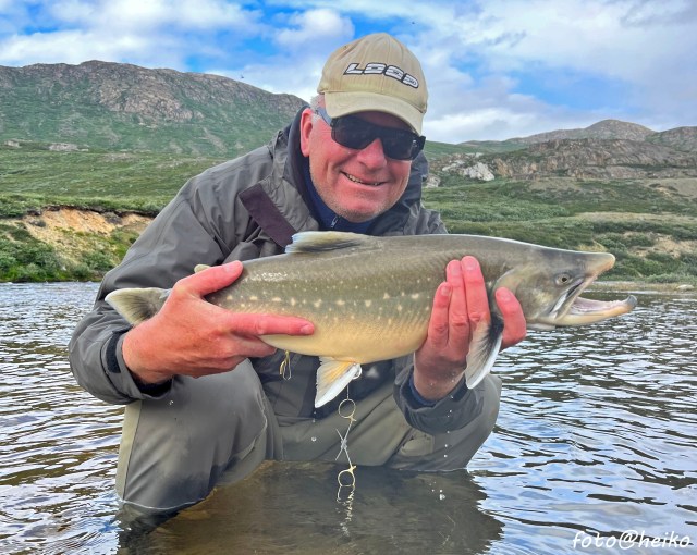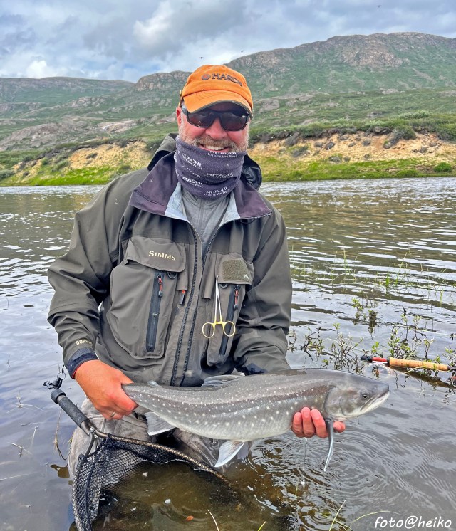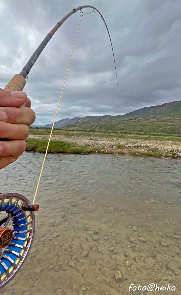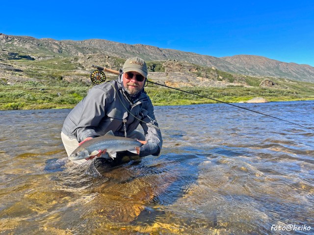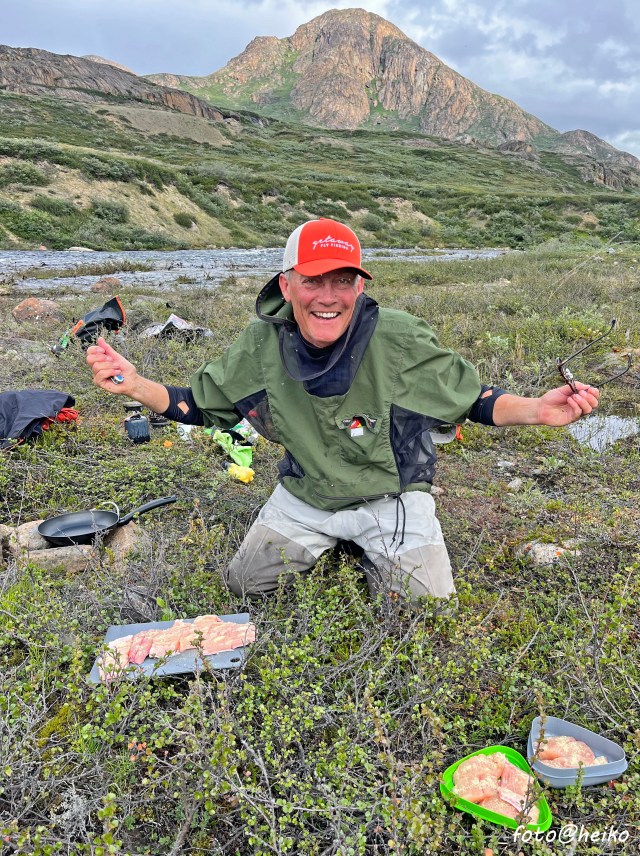 Det skule mye frustrasjon til for Morten denne dagen, men etter en herlig lunch servert av Peter, var Morten igang! Ja, lunsjen ja… Artic Char stekt i panne ved elven inne på Grønland! Kan det bli bedre? Tusen takk Peter!