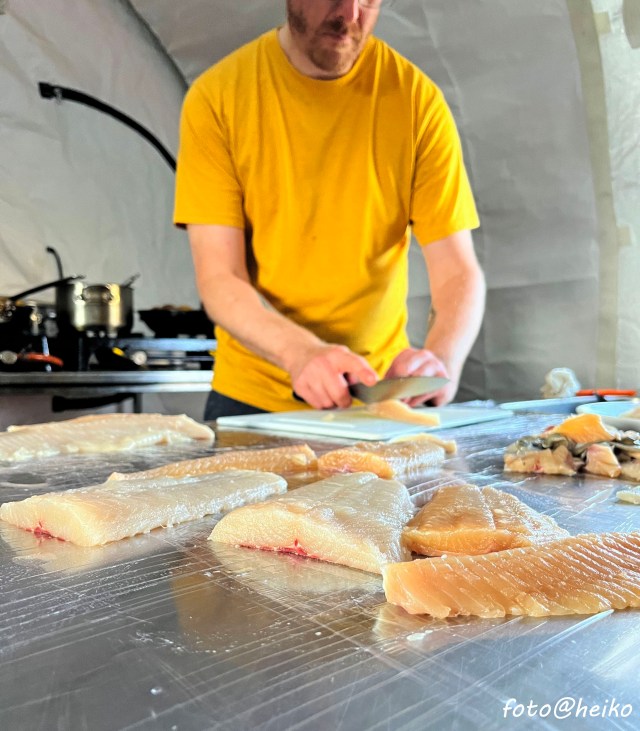 Etter en lang tur tilbake til camp, hadde kokken Kim Persson som er gourmetkokk i Gøteborg til vanlig, laget Artic Char med poteter, rotgrønnsaker og hvitvinssaus. En fantastisk bra avslutning på en spennene dag og jaggu var jeg helt gåen da klokken så vidt hadde passert 21:30