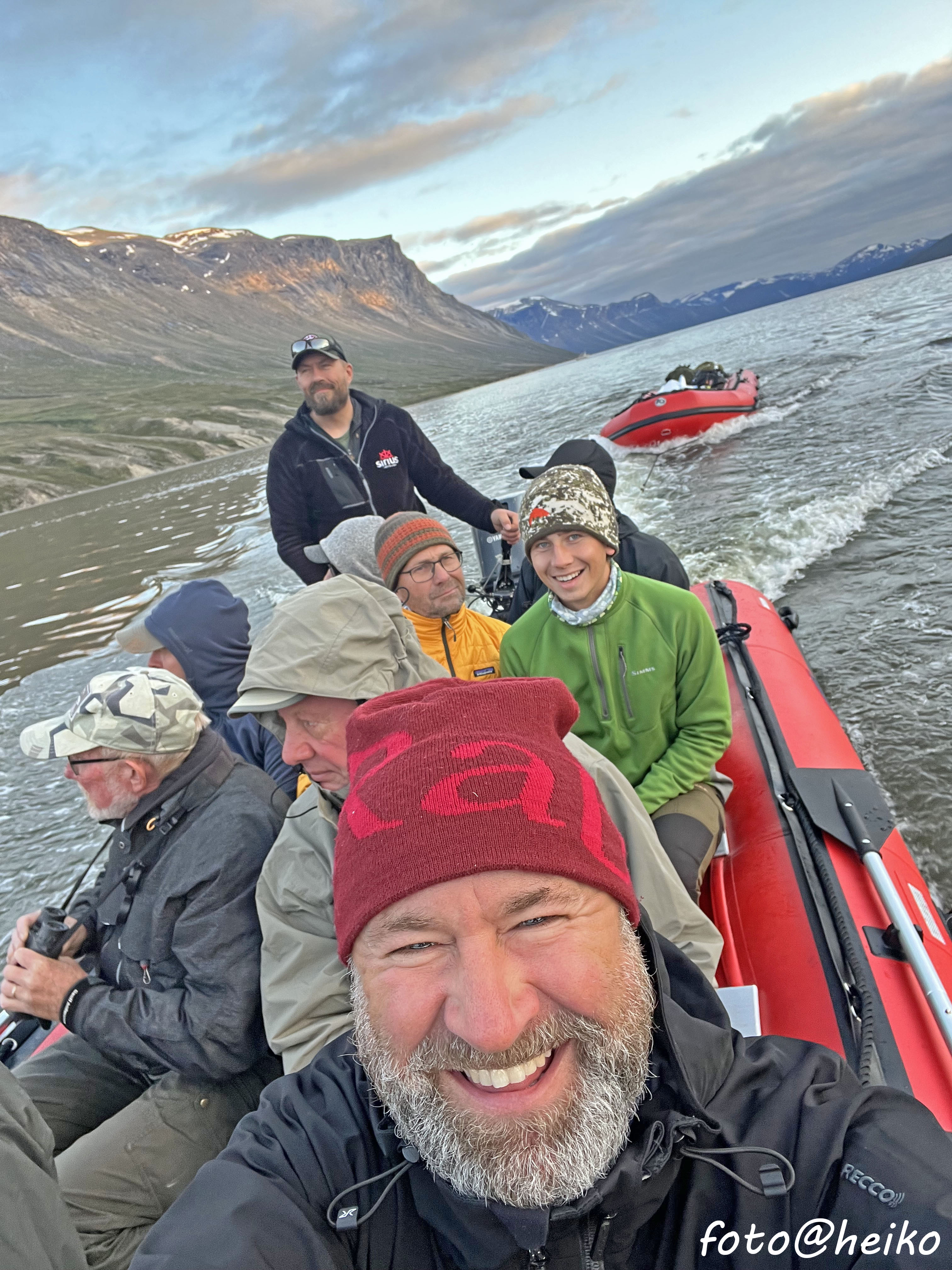 Etter en god frokost med info om at Sirius kom å hentet oss ca 15:00, ble den en absolutt avslappende dag. Null stress og oppgaven var kun å rydde ut av teltet og gjøre det rent! Returen ut fra Camp North, ble da den nye gruppen ble satt i land etter at tidevannet gjorde det mulig å komme opp elven og inn til land. På det høyeste er det ca 4,5m tidevann her oppe på Grønland, så stor forskjell til Sandefjord.