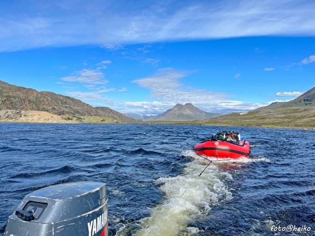 Dagen etter er det justert noe og vi får avgang fra Kangerlussuaq 15:00 med Sirius som er transportfirma som tar oss ut og opp til Sisimiut for fuel som tar ca 5 timer. Fjorden ut er 180 km lang! Men, vi er igang 🙂