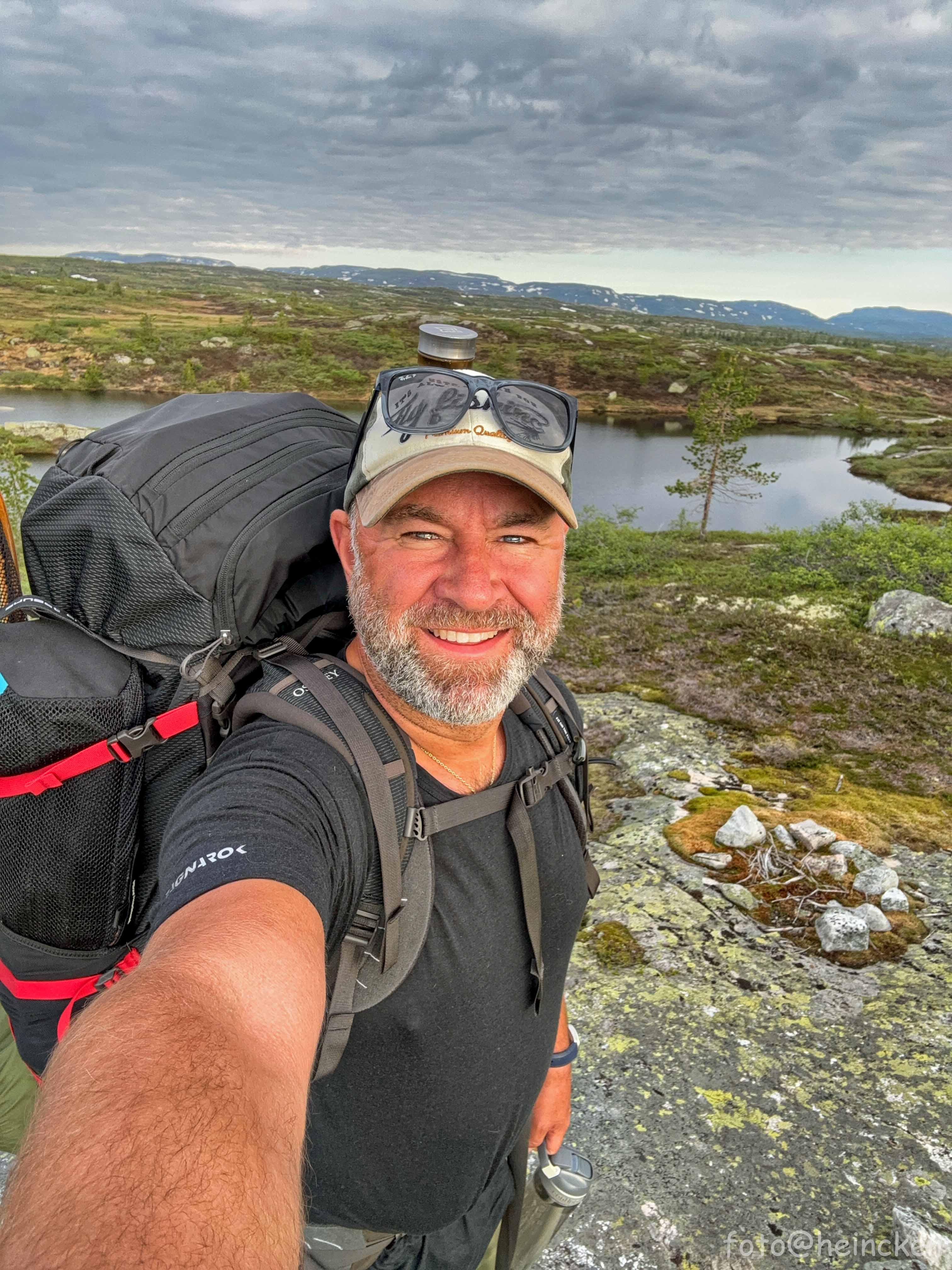 Jeg hadde pakket sekken for 2 overnattinger i telt og med 22 kg satte jeg turen oppover fjellet i fint sommervær. Shorts og kortermet ulltrøye var akkurat passe men var litt skeptisk med tanke på flekkflue, knott og mygg, men det gikk uten noen plager, faktisk ingenting på veien oppover, hvilket var ufattelig behagelig!