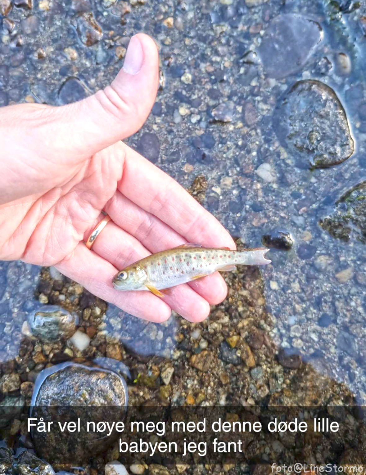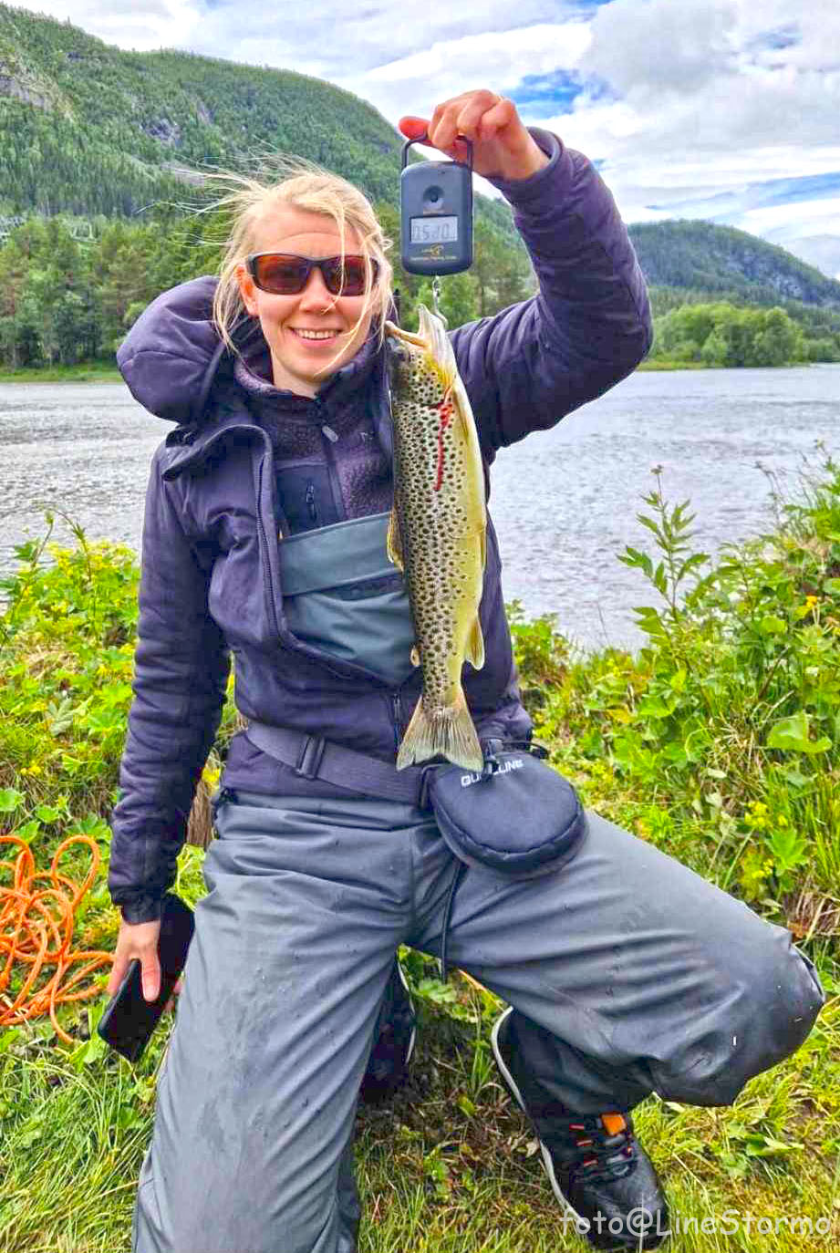 Line som også hadde blitt med sin far opp i år igjen, hadde kun få dager på «å gjøre det», og utfordringene lot seg ikke vente ettersom vi andre var borti fisk men også så de ufattelige bitte små vakene, der fluene bare sugen ned under vannskorpen, og vi alle vet hvor frustrerende det er å se og høre om hvordan fiskene bare tar-og tar og hvordan det vaker der og her….. selv ble jeg spænket med Purreløk et år da jeg gikk i tre dager uten et eneste slag på fluene, så det var forståelse av alle når frustrasjonen av å ikke se vakene var et faktum. Så siste dagene Line fikk være i Skrittet, løsnet dette! Line har selv satt fler av oss på plass med noen fine prikkefanter, da vi ikke fikk noe, så tirsdagen løsnet det også for henne med flere fine fisker!