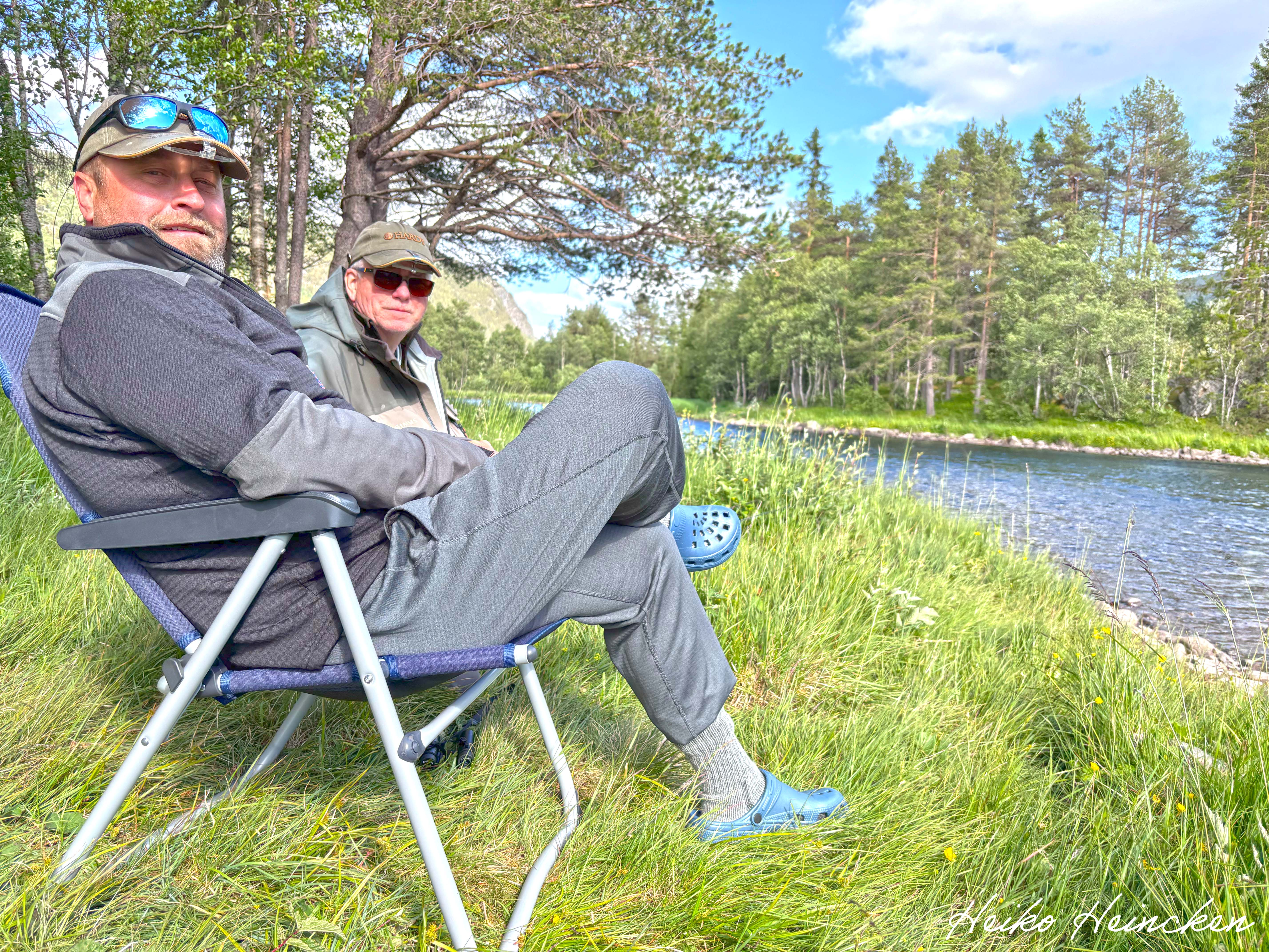 Det tok ikke lange tiden før «bunaden» var på og vi satte snuten rett i elven der vi traff Ole Petter som hadde ligget i lavvo en ukes tid og bod mer eller mindre i elven. Han fortalte om vakende ørret og fiskemåltid, så håpet steg ganske raskt denne første fredags kveld.