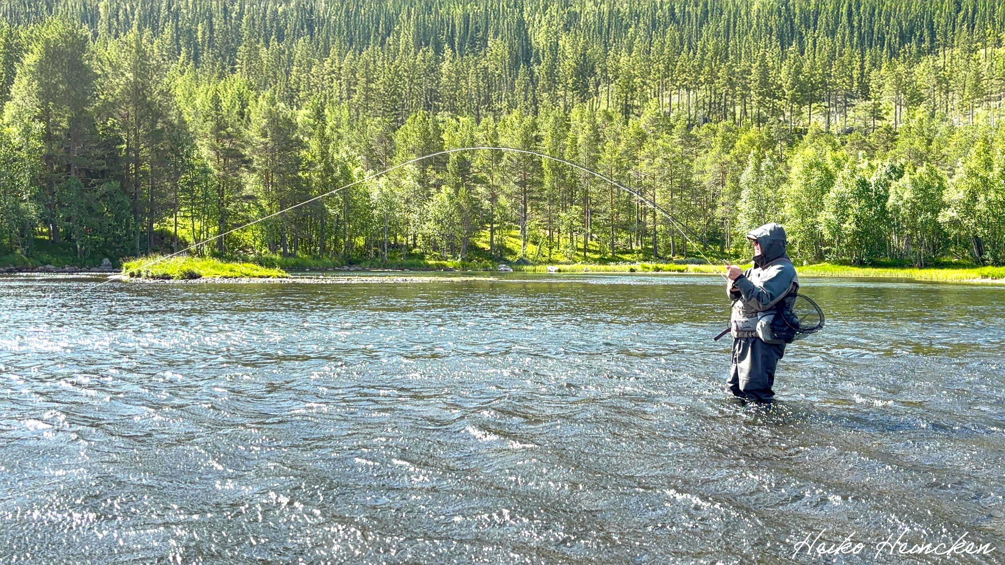 lurer forresten på hva han ene i elva tenkte da han svarte «Ja, det er klart du kan fiske på den fiske», og denne sto å vaka 50m ovenfor en random kar som kastet og kastet og ikke fikk den til å ta flue, så gikk Ragnar ut og sveipet 2 kast over vaket og PANG kræsj….. 🤣 Jeg kjenner til følelsen og vet hva jeg ville ment om det!!