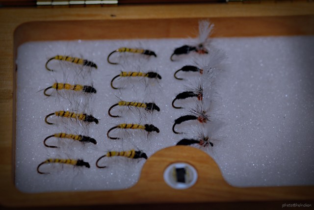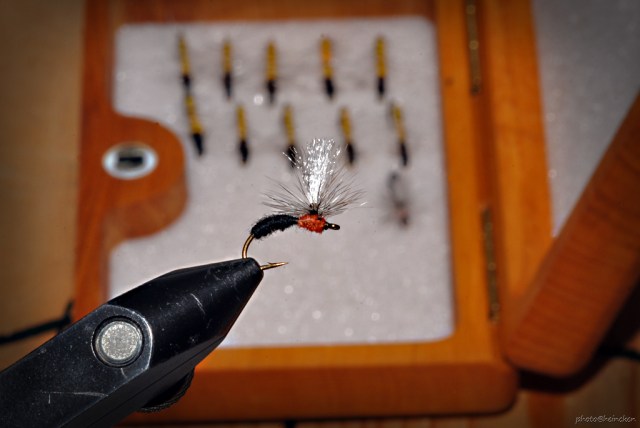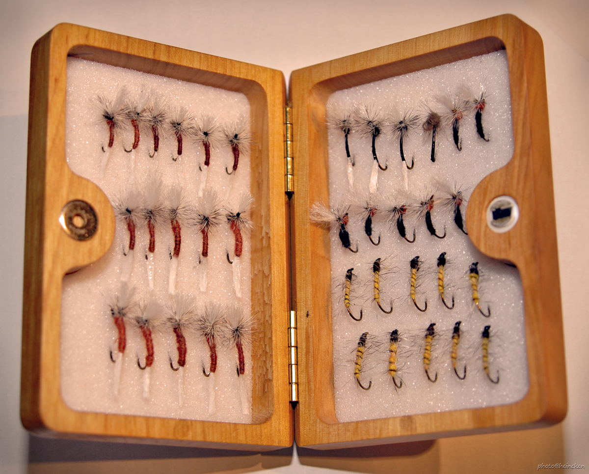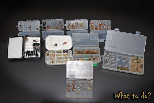 Du må fiske mer på vanskelige plasser med dårlig baksleng, Heiko! Ser jo ikke ut som du tørrfluefisker i det hele tatt med det voldsome utvalget der. Ellers kan du jo godt låne noen rom i tørrflueboksen min, så lenge jeg får ha boksen i fluevestlomma mi, hehe! Det finnes alltid løsninger… 😉