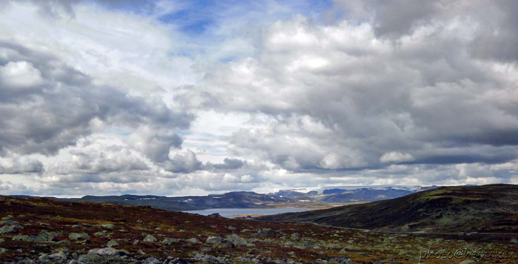 Fra Lappsteinen og inn til Hein er det 17km å gå, hvilket jeg brukte ca 3 timer på. Været var ikke aller værst denne ettermiddag og solen skinte innemellom skyene av og til. Værmeldingen sa regn, men dette er jo bare prognoser, hvilket man ikke skal stole for mye på. På vei inn traff jeg på et ekteparr som begge hadde Nikon speilreflekskamera hengende rundt halsen. Jeg merket fort at jeg hadde valgt feil denne turen. Ettersom dette var en helgtur, hadde jeg valgt å låne pocketkamera til min sønn. Jeg vet jo hva som er forskjellen, men lot meg velge feil alikevel. Dem fortalte om alt dem hadde sett og knipset bilde av, ja dem påsto også å ha sett Gaustatoppen fra Øvre Hein…